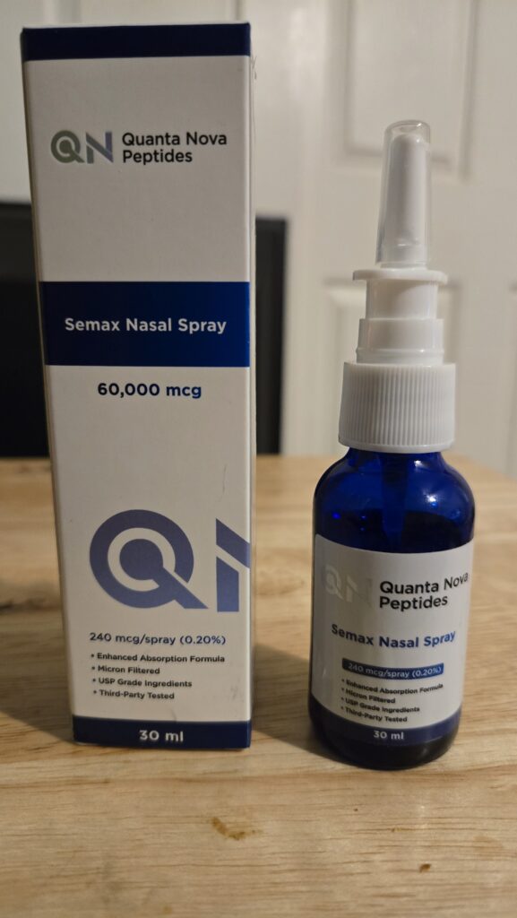 I’ve been using Quanta Nova’s Semax Nasal Spray for a few weeks now, and I am genuinely impressed. The attention to quality is apparent right out of the box. The product comes in a UV-protected glass bottle, which not only looks professional but also ensures the peptide stays stable. The inclusion of a Certificate of Analysis gave me extra confidence in the purity and potency of the product.